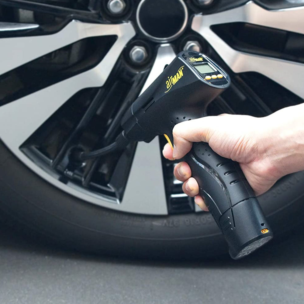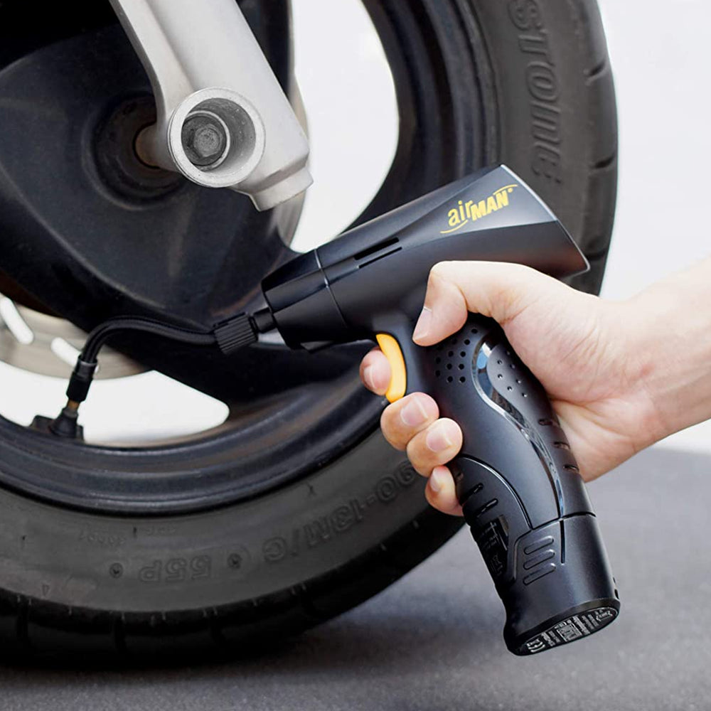 AirMan's all new AirGun 2.0 is an all purpose professional compressor suitable for bikes, motorcycles, cars, balls and sports equipment. With a built-in long-lasting Lithium-Ion battery, the AirGun is perfect for quickly topping up tyre pressures without having to work around power cords.