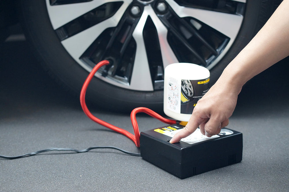 - Inflates a large car tire (41 L) form 0 to 2.5 bar in less than 5 min Seals tire punctures of up to 6 mm